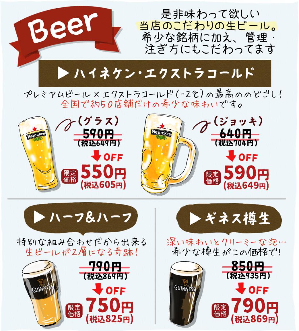 ①こだわりの生ビールを特別価格で!